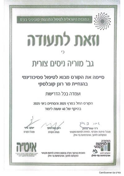 קורס סכמה תרפיה (תעודה בינ"ל)
