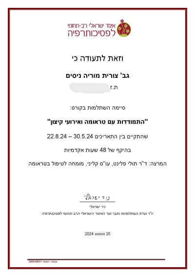 קורס – התמודדות עם טראומה ואירועי קיצון